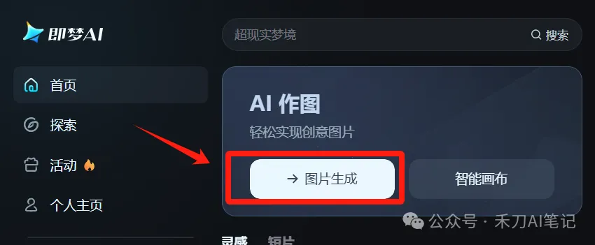 打开即梦AI:https://jimeng.jianying.com/ai-tool/home (手机APP也可以)