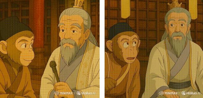 比如我用“小猴子”、“老人”来分别指代左右两个人。这个指代一定要用AI能理解的用词。比如用“悟空”、“菩提”,那AI就不一定能准确理解了。