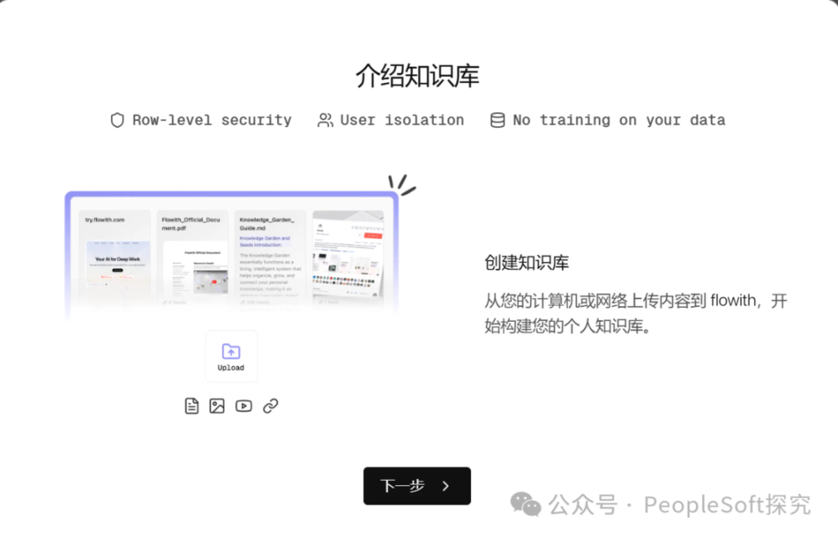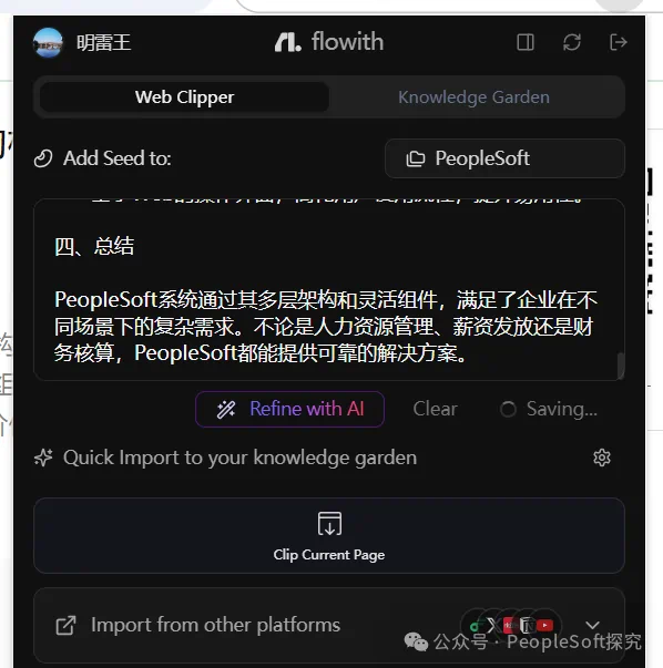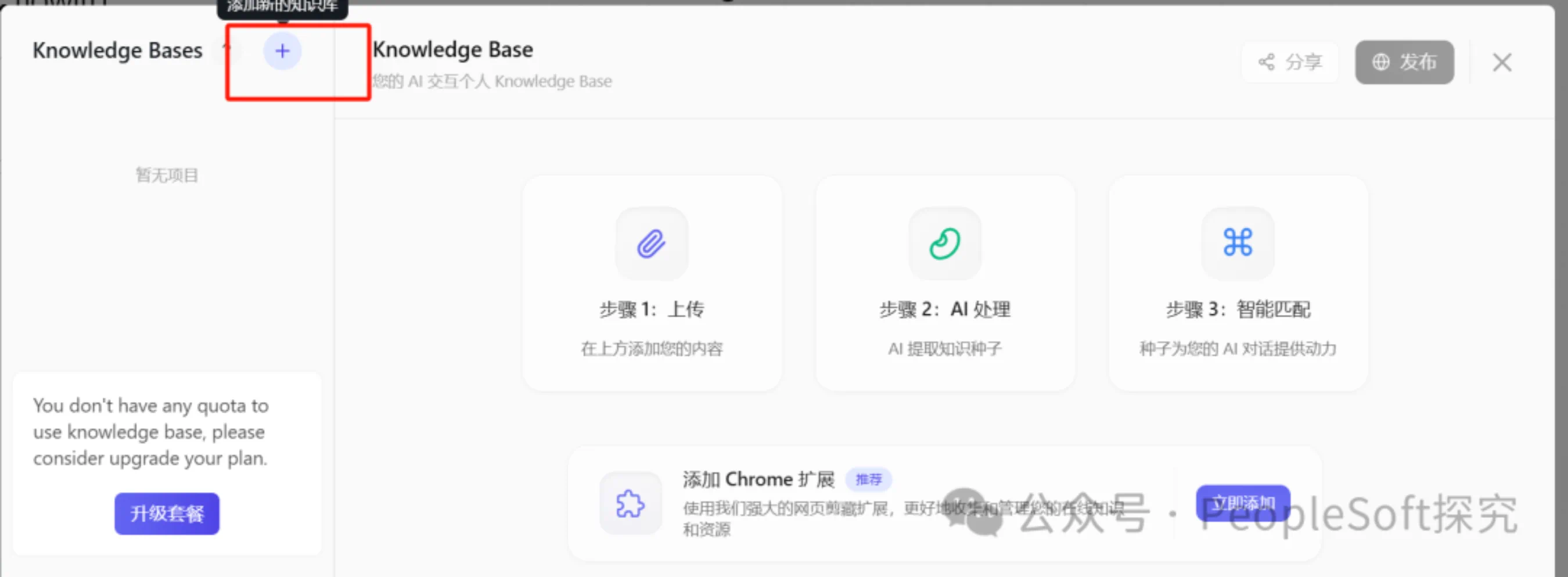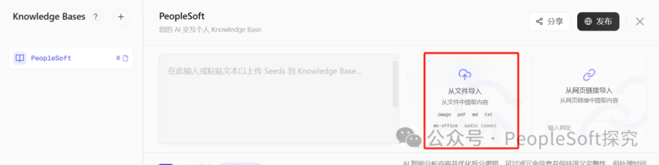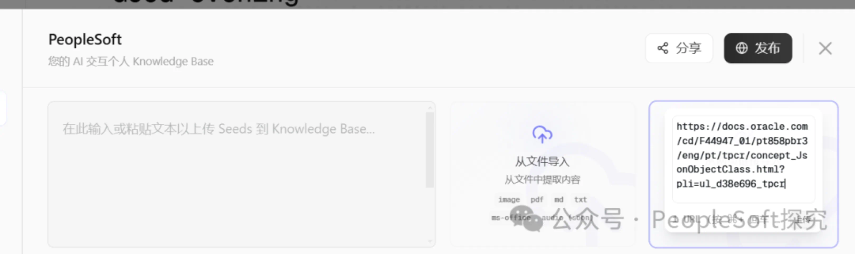 建立一个 PeopleSoft 知识库。支持文件、图片,pdf md, txt office 系列,还支持网页提取内容。