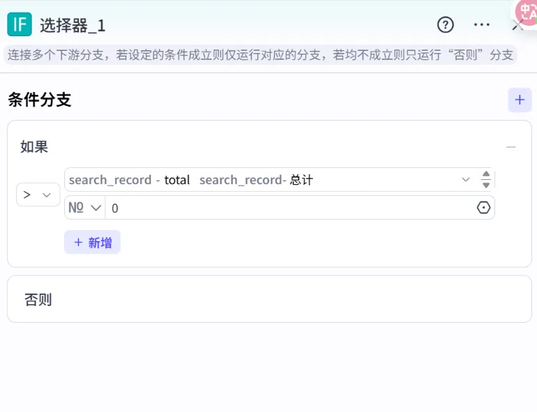 节点 2:添加【IF 选择器】节点。这里是做一个数据初步筛选。